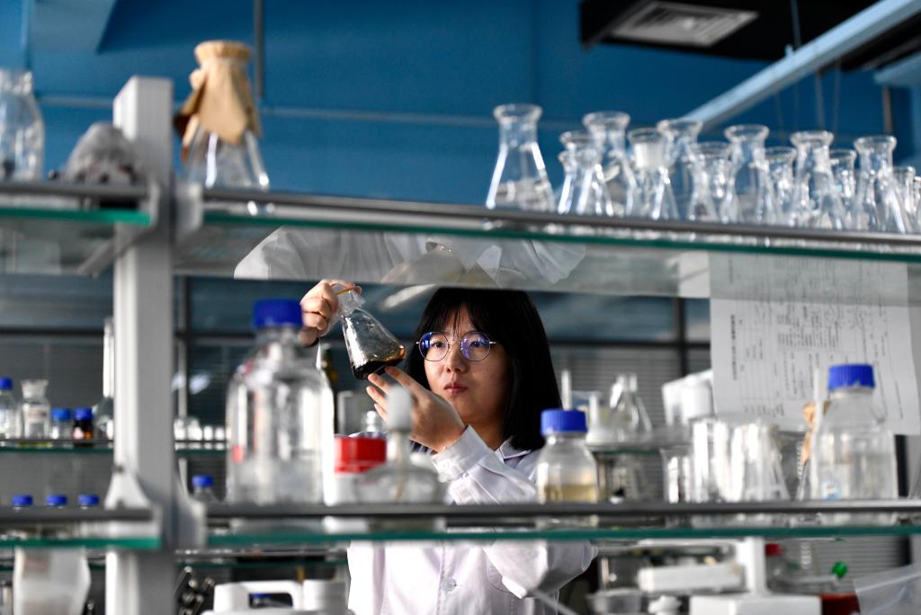 天津濱海-中關村科技園的天津慧智百川生物工程有限公司內,工作人員正在做實驗。(新華社記者 趙子碩 攝)