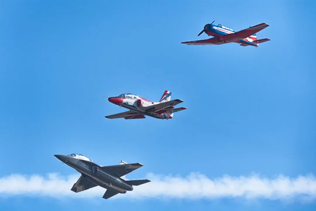 晴空之上,中國空軍“紅鷹”表演隊,俄羅斯、美國、法國特技飛行表演隊帶來“空地對話”,中國商飛C919、ARJ21以及洪都L15用轟鳴的引擎聲喚醒南昌“航空血脈”,擦亮天空之上的“英雄城”元素。