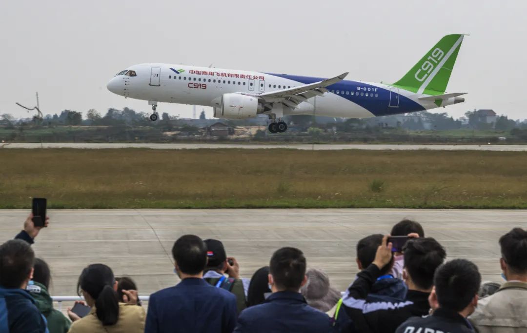 C919大型客機從南昌瑤湖機場滑行入空。羅水長/攝