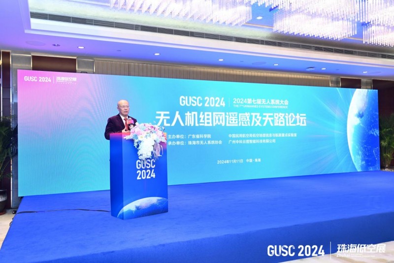 中國民用航空局低空地理信息與航路重點實驗室主任廖小罕主持論壇,珠海市人大常委會主任潘江發表致辭,中國科學院院士周成虎發表主題演講,“無人機組網遙感及天路論壇”濟濟一堂,氣氛熱烈。
