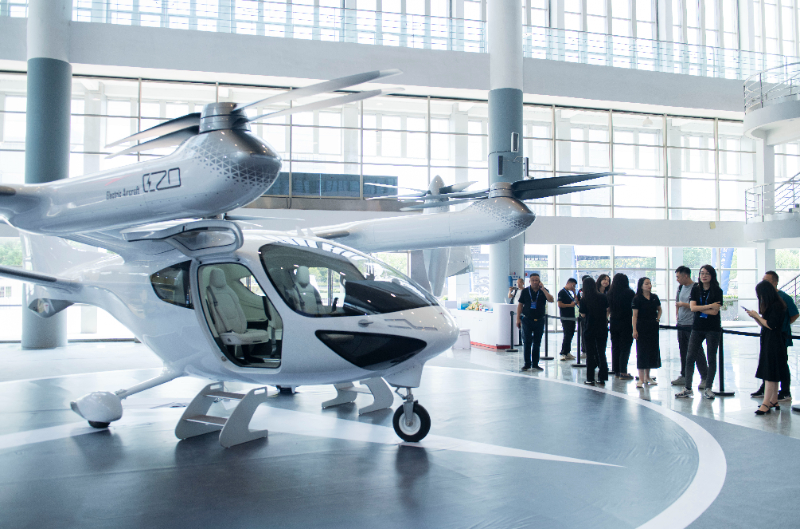 9月6日,觀眾在2024低空經濟發展大會創新成果展區了解一款電動垂直起降飛行器。新華社記者 傅天 攝