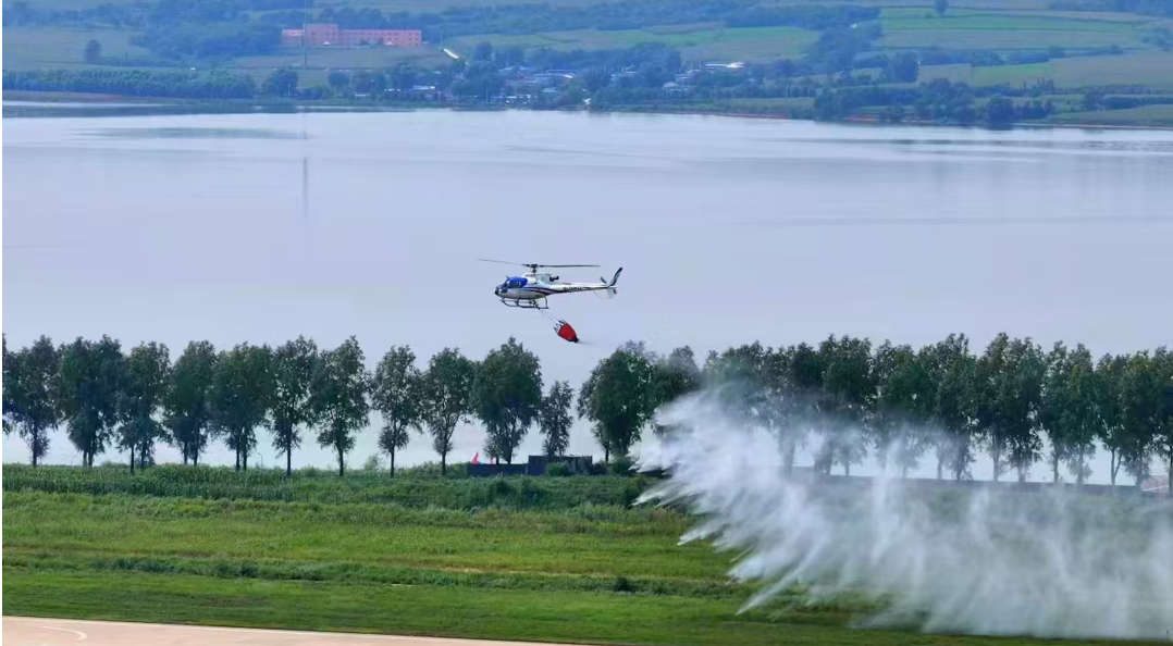 應急直升機滅火灑水演習(法庫縣委宣傳部供圖)