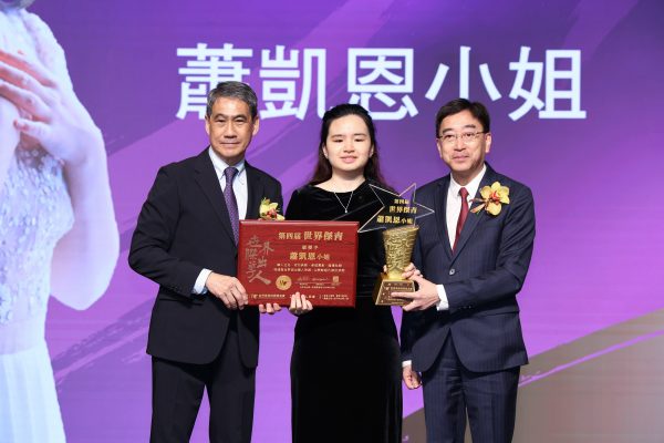 視障女鋼琴家蕭凱恩(中)獲得“世界杰青·世界杰出華人青年獎”