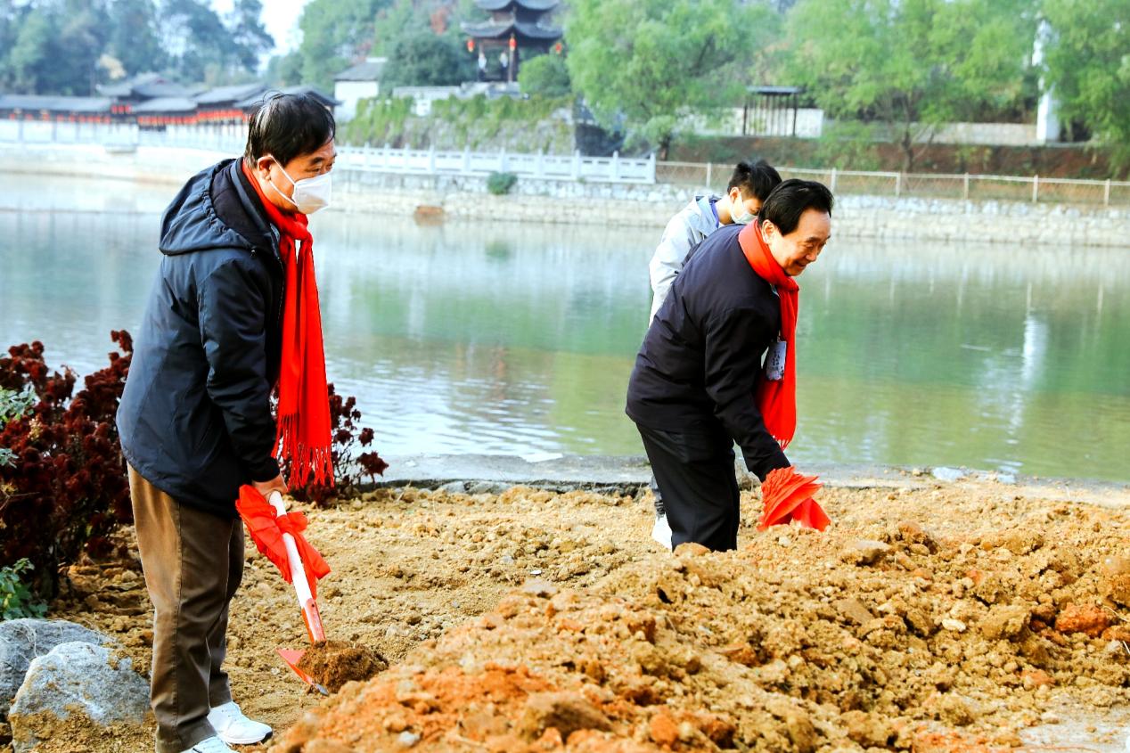 領導嘉賓為新栽到湖湘大地上的柳樹培土。