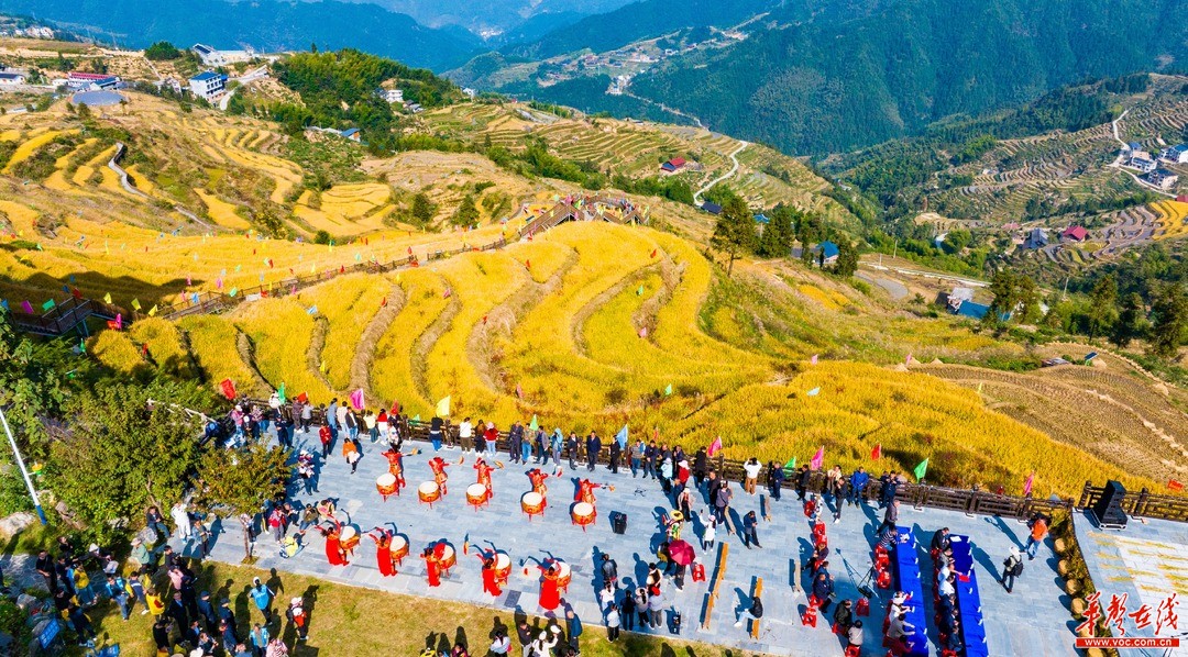 (懷化市溆浦縣葛竹坪鎮山背花瑤梯田,滿目金黃。田文國、肖化勇攝)