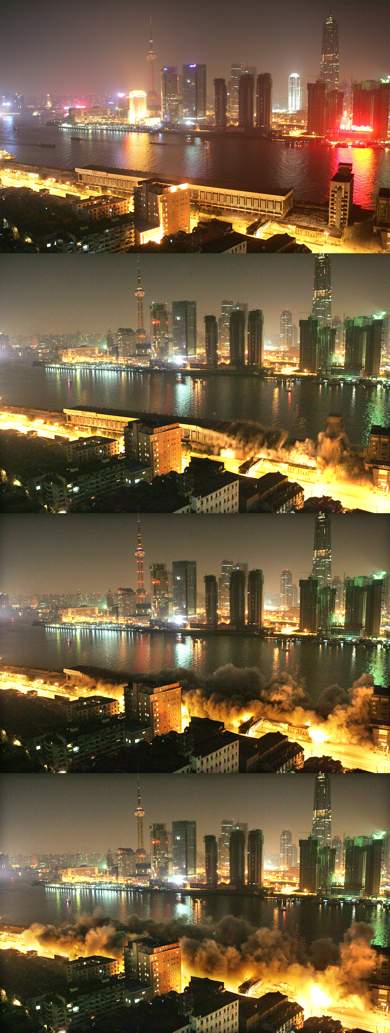 2004年12月3日,十六鋪碼頭被爆破拆除動圖。王杰 攝