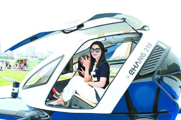 該飛行器采用電力驅動,起降、操控全由程序完成。乘客坐上飛行器,圍繞繽紛水岸濕地公園飛行一圈后,回到起點。