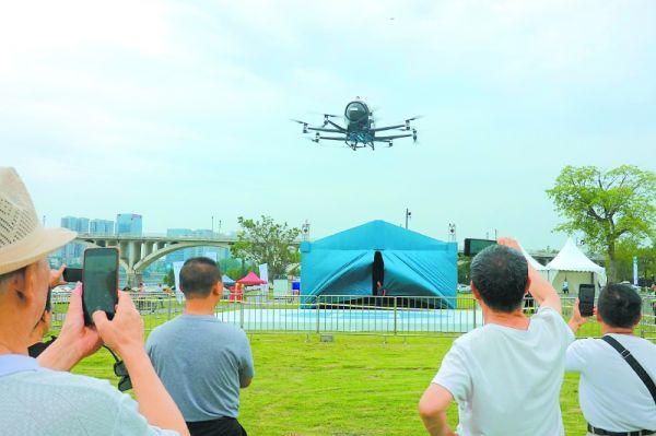 今年6月,南充嘉陵江畔,無人駕駛載人航空器旅游觀光項目舉行首飛儀式,體驗人員進入機艙,隨著飛行器緩緩升空,體驗者透過全景擋風玻璃,將嘉陵江兩岸美景盡收眼底。