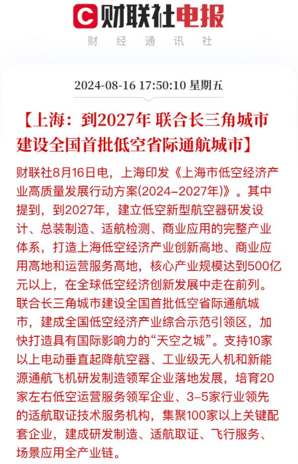如上海明確,要建成全國低空經濟產業綜合示范引領區,加快打造具有國際影響力的“天空之城”。