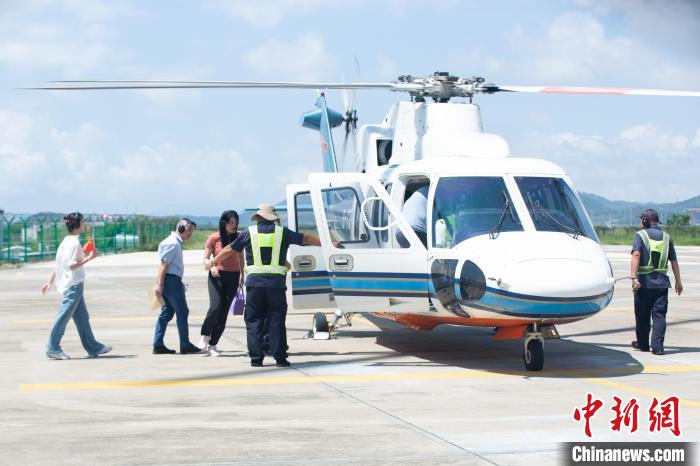 9月29日,海南三亞至廣東湛江的省際跨海直升機航線首飛成功,圖為直升機準備從三亞天涯直升機場起飛。南航通航供圖