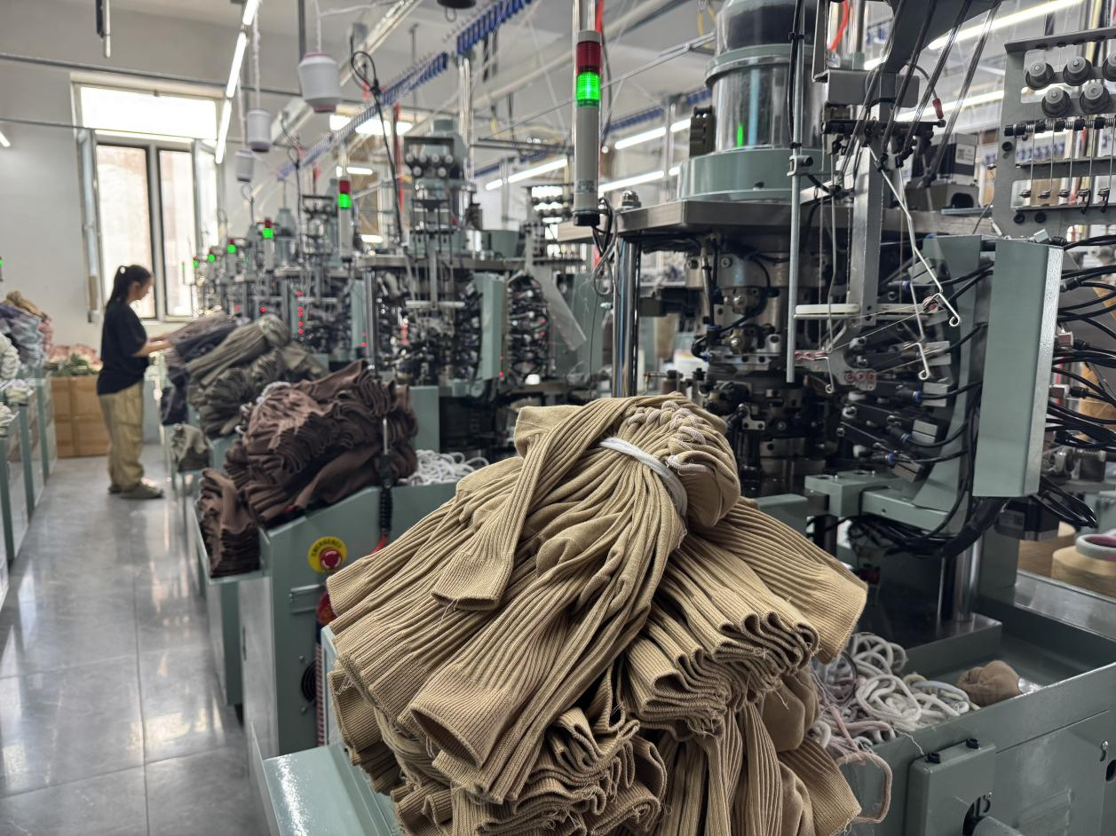 當前,小北河鎮的一些襪企不斷加大投入“智改數轉”,正逐步從4代電腦機向5代智能機升級,全新的產業活力不斷釋放。澳笠森襪業的生產車間里,織襪工人龐大姐把生產好的襪子整理好拿到成品區:“不到3分鐘,就能織出一雙棉襪,我一個人能管十幾臺機器。”