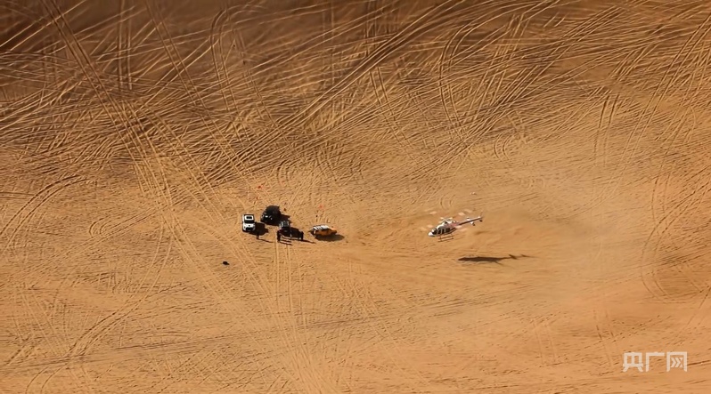 阿拉善盟低空經(jīng)濟(jì)暨車輛測試活動現(xiàn)場的沙漠救援(央廣網(wǎng)發(fā) 阿拉善盟融媒體中心供圖)