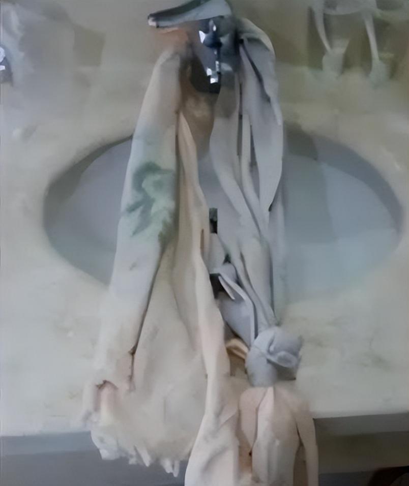 她拿出四條毛巾,把它們緊緊地綁在水龍頭上,編成了一個致命的繩套。