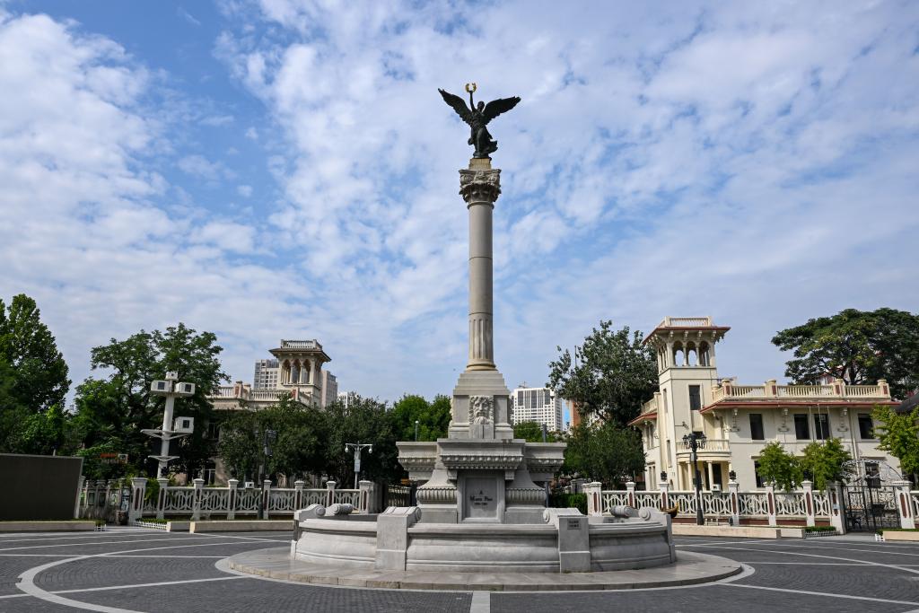 這是天津意式風情區內的建筑和雕塑一景。新華社記者孫凡越攝