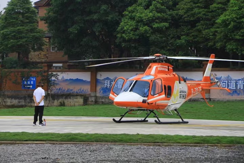 直升機(jī)停靠洛帶通用機(jī)場。舒鑫攝