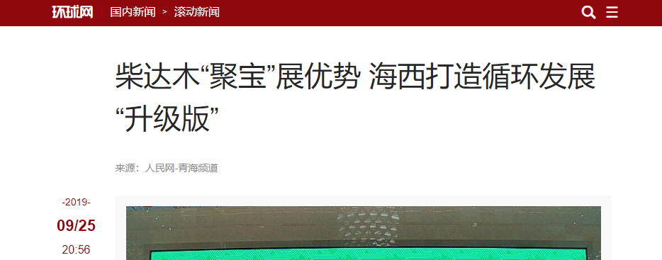 環(huán)球網(wǎng)——《柴達(dá)木“聚寶”展優(yōu)勢(shì) 海西打造循環(huán)發(fā)展“升級(jí)版”》2019-9-25