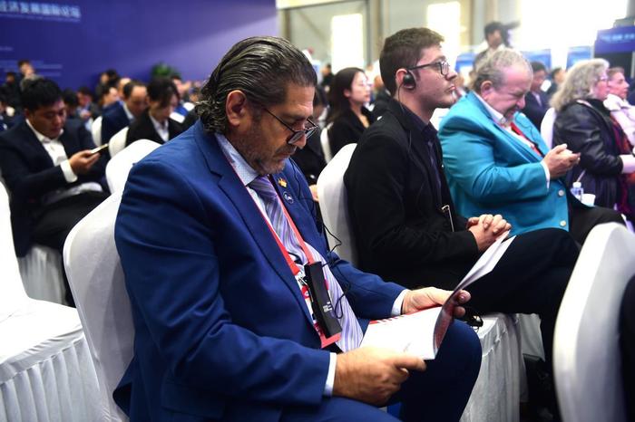 與會中外嘉賓在聆聽主題演講。傅新春攝