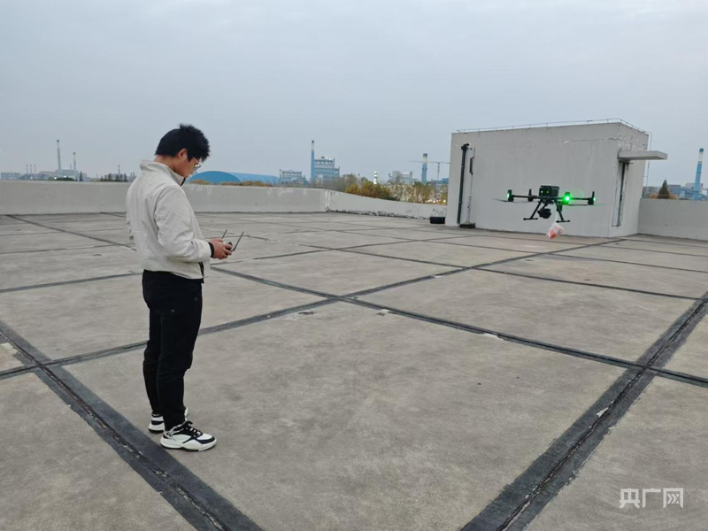 飛手操作無人機為錨地船舶配送物資(央廣網(wǎng)記者 王錫斐 攝)