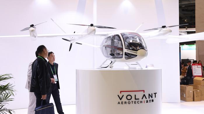 2024年低空經濟進入爆發元年,進博會的一大看點就是低空經濟產品。在汽車館,人流量最高的區域并非眾多著名汽車品牌展臺,而是專門開辟出的一塊“未來低空出行”專區。時的科技、御風未來、沃蘭特、覽翌航空等低空出行eVTOL航空器制造企業集體亮相。