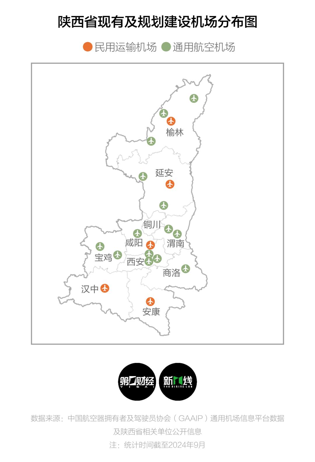 陜西省現(xiàn)有機(jī)場(chǎng)共17座,除了西咸、榆林、延安、漢中和安康的5座民用機(jī)場(chǎng),還有12座通用機(jī)場(chǎng),它們多集中于西安及周邊城市。氣候干燥、光照充足、少雨少霧的西安及周邊地區(qū)一直是航空器試飛的絕佳選擇。