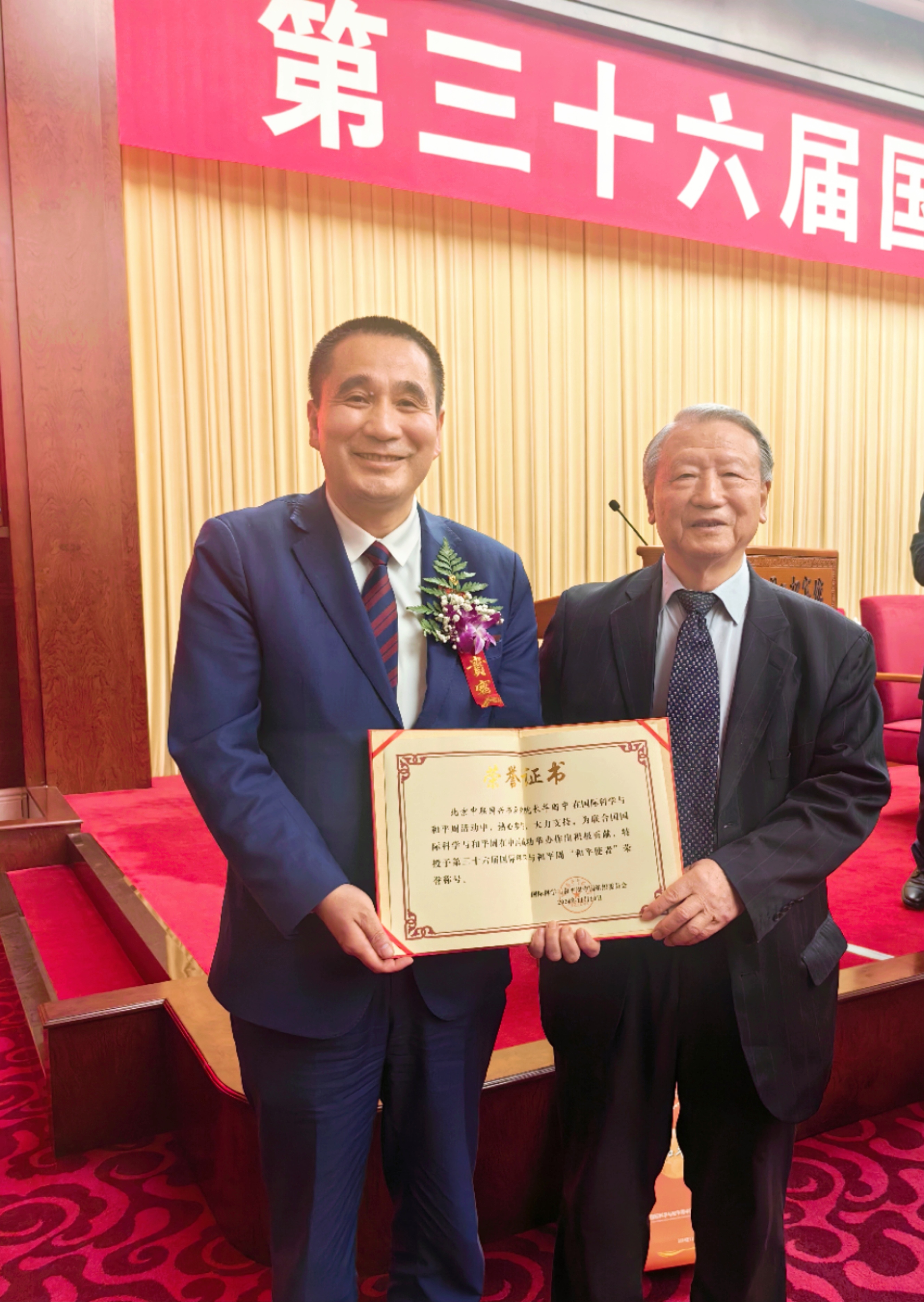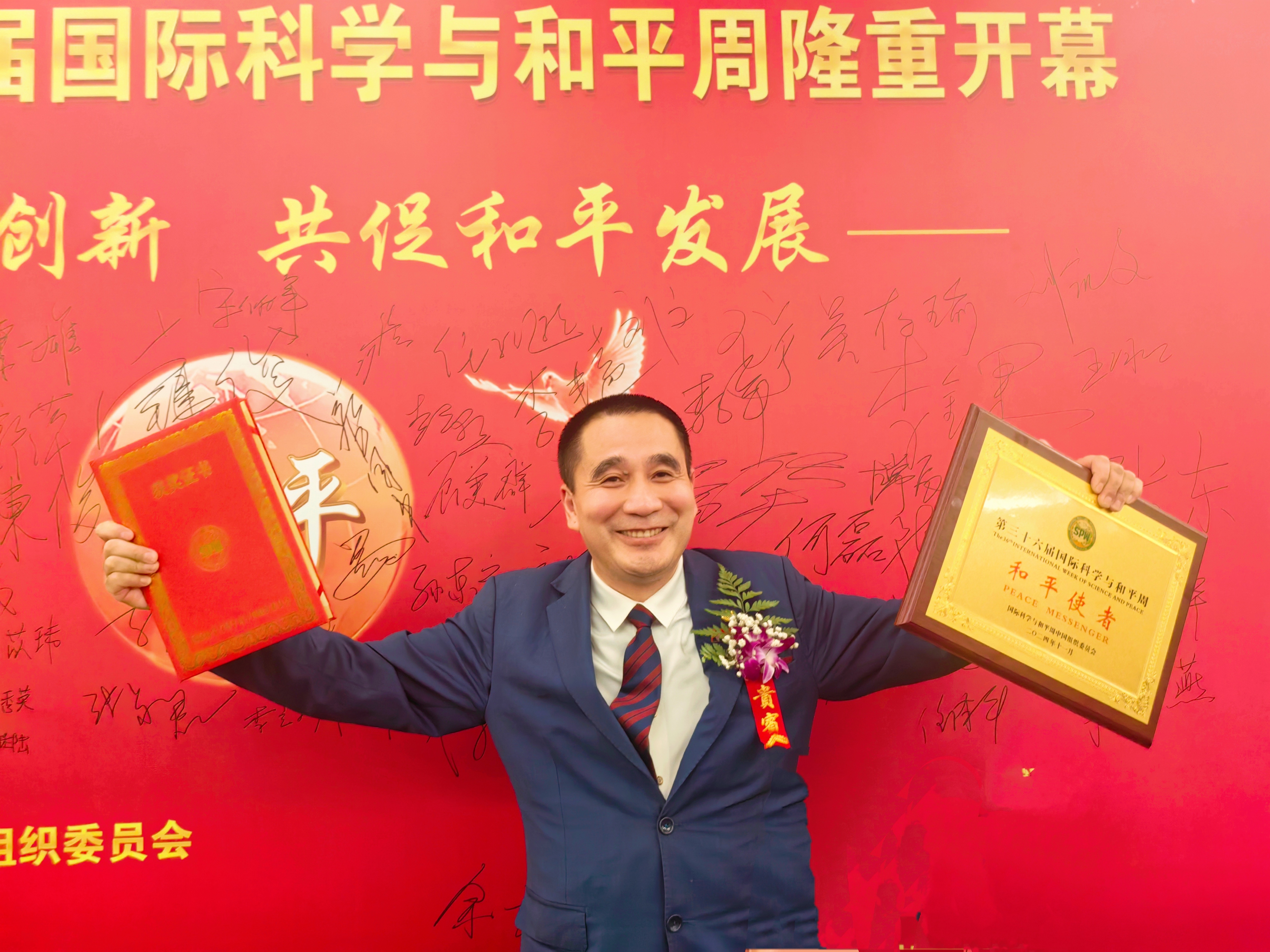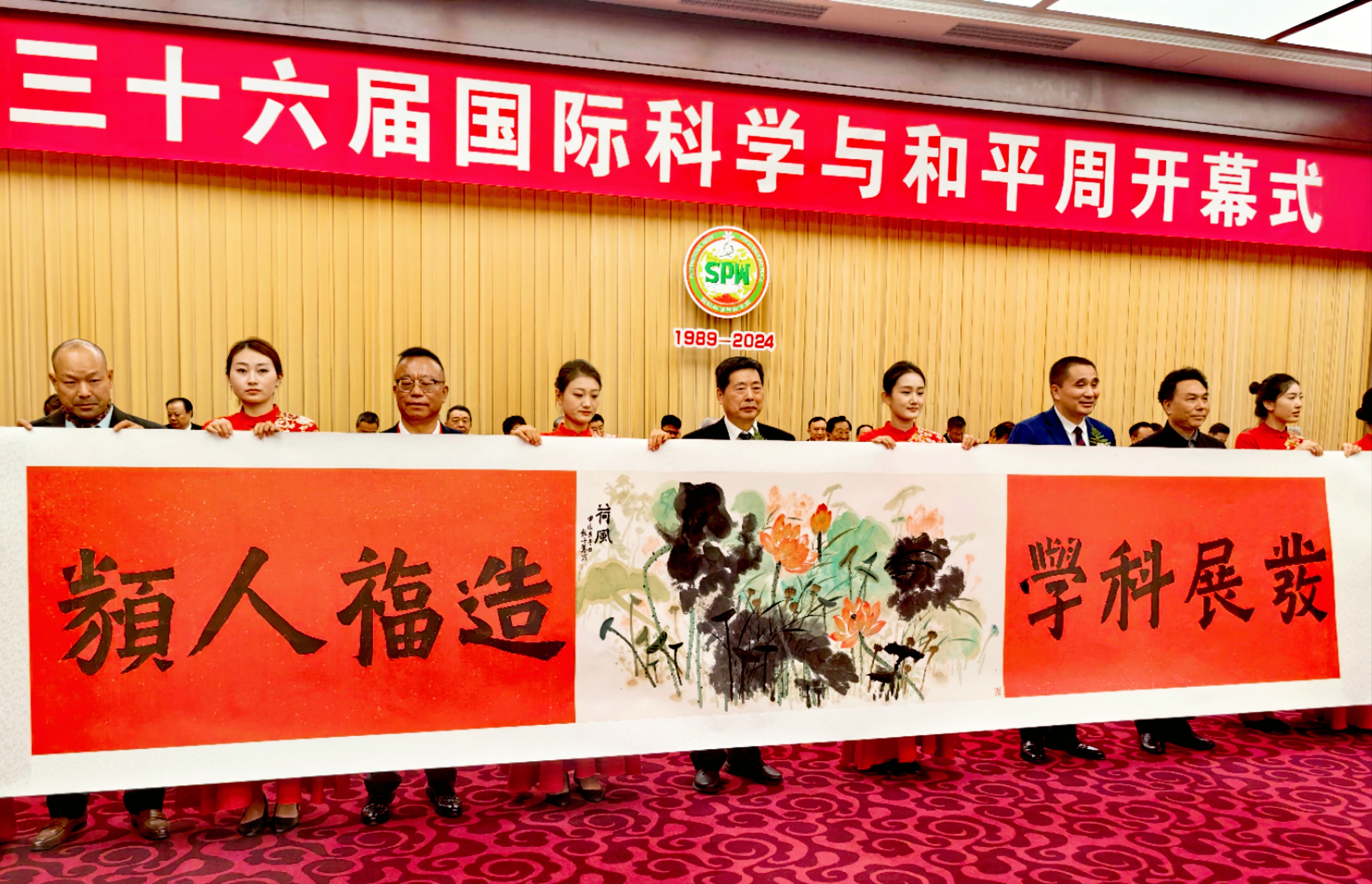 華國(guó)中代表中聯(lián)國(guó)興書畫院向國(guó)際科學(xué)與和平周中國(guó)組委會(huì)贈(zèng)送作品并發(fā)表精彩致詞:科學(xué)、和平、發(fā)展是人類社會(huì)的永恒主題,是人類文明進(jìn)步繁榮的基礎(chǔ)。和平、和睦、和諧是中華民族5000多年來一直追求和傳承的理念。中華民族是愛好和平的民族。和平、和合、和睦、和諧的追求深深植根于中華民族的精神世界之中,深深溶化在中國(guó)人民的血脈之中。讓我們共同胸懷為人類謀進(jìn)步的光榮偉大夢(mèng)想,腳踏和平發(fā)展的人間正道,吸吮綿延不斷的中華文明,中華民族同世界上一切愛好和平的民族攜手共進(jìn),手拉手,心連心。向著人類命運(yùn)共同體的光明大道闊步前行。