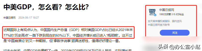 近年來,中國經濟的全球地位發生了顯著變化,特別是其GDP占美國GDP的比例從2021年的77%急劇下降至2024年的59%。這一變化引發了外界對中國經濟健康狀況的廣泛質疑,但背后的原因值得深入分析。