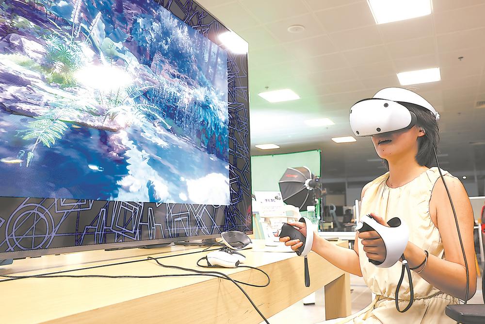 位于福州長樂區數字教育小鎮的網龍基地內,市民在體驗VR項目。王旺旺 攝