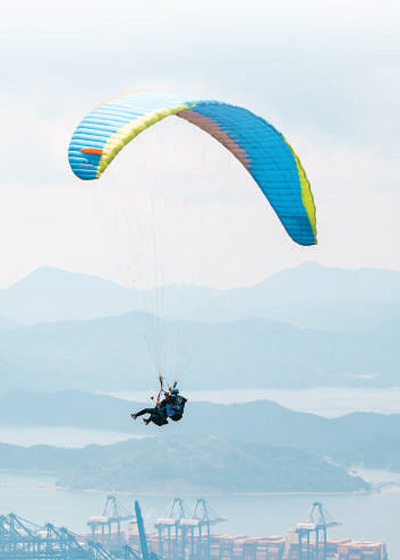 深圳鹽田區(qū)的滑翔傘文旅項(xiàng)目?! ≠囁紴閿z(人民視覺)