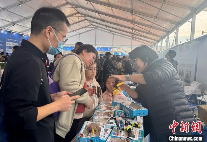 11月23日至25日,首屆中國(紹興)低空經濟展覽會在浙江省紹興市越城區舉行,展會面積約2萬平方米,500余架(臺)不同類型的航空器吸引民眾。圖為民眾了解飛行玩具。中新社記者 項菁 攝