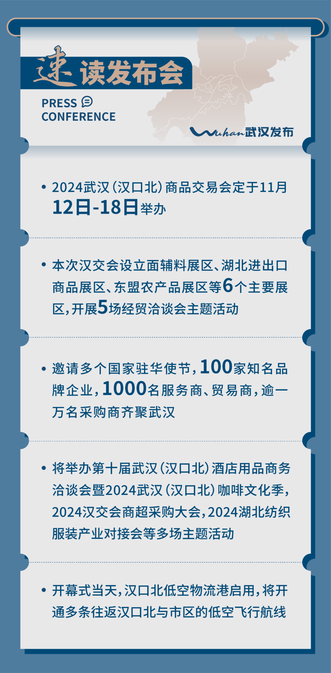11月8日,武漢市人民政府新聞辦公室召開“2024武漢(漢口北)商品交易會”新聞發布會。