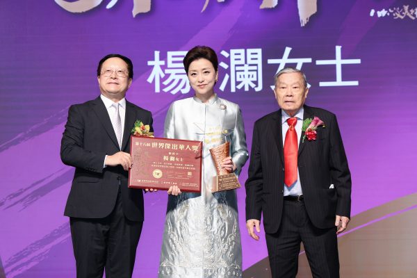 世界杰出華人協會程萬琦(右)為 傳媒企業家楊瀾(中)頒獎