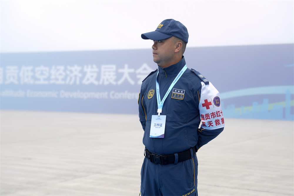自貢通航機場總經理邱學清,在本次大會擔任動態飛行展示服務保障總指揮調度。作為一位曾經服役于中國人民解放軍空軍部隊的退役軍人,服役期間曾榮立個人三等功,退役后他將自己對飛行的熱愛和執著融入自貢低空經濟發展,毅然投身自貢航空產業園區建設,繼續書寫自己筑夢藍天的夢想,在另一賽道奉獻力量。