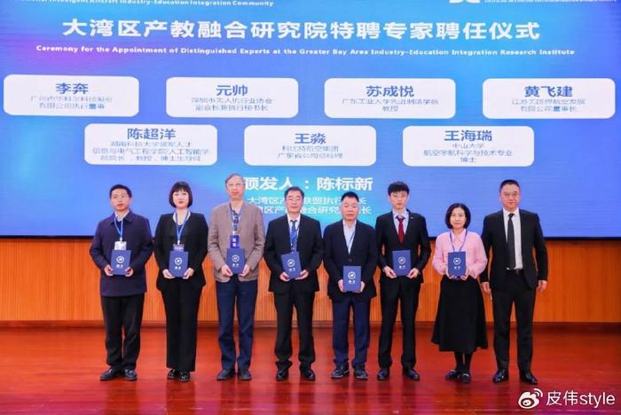 廣東工業大學蘇成悅教授、湖南科技大學陳超洋教授、江蘇無國界航空發展有限公司董事長黃飛建、科比特航空集團廣東省公司總經理王淼等7人受聘大灣區產教融合研究院特聘專家。