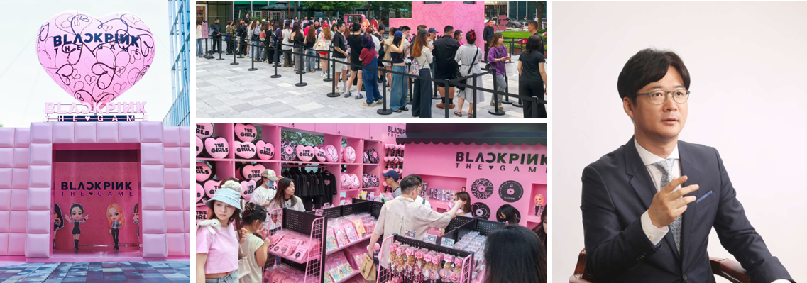 左圖、中圖為上海嘉里中心Blackpink The Game快閃店,右圖為韓國文化產業振興院北京代表處尹鎬辰首席代表