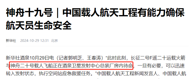 而在這個關鍵時間節點,我國神舟二十號如今也正處于待命狀態。
