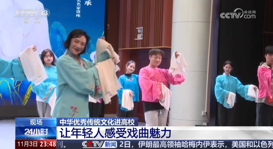 南昌大學教授 第八屆中國戲劇梅花獎獲得者 陳俐:我會把戲曲的一些道具、服飾都介紹給同學,也請同學上來穿上衣服投投水袖、耍耍花槍,讓大家能夠親身感受到戲曲的魅力。我們的傳統文化確實也需要年輕人的喜歡,它才能夠傳承下去。