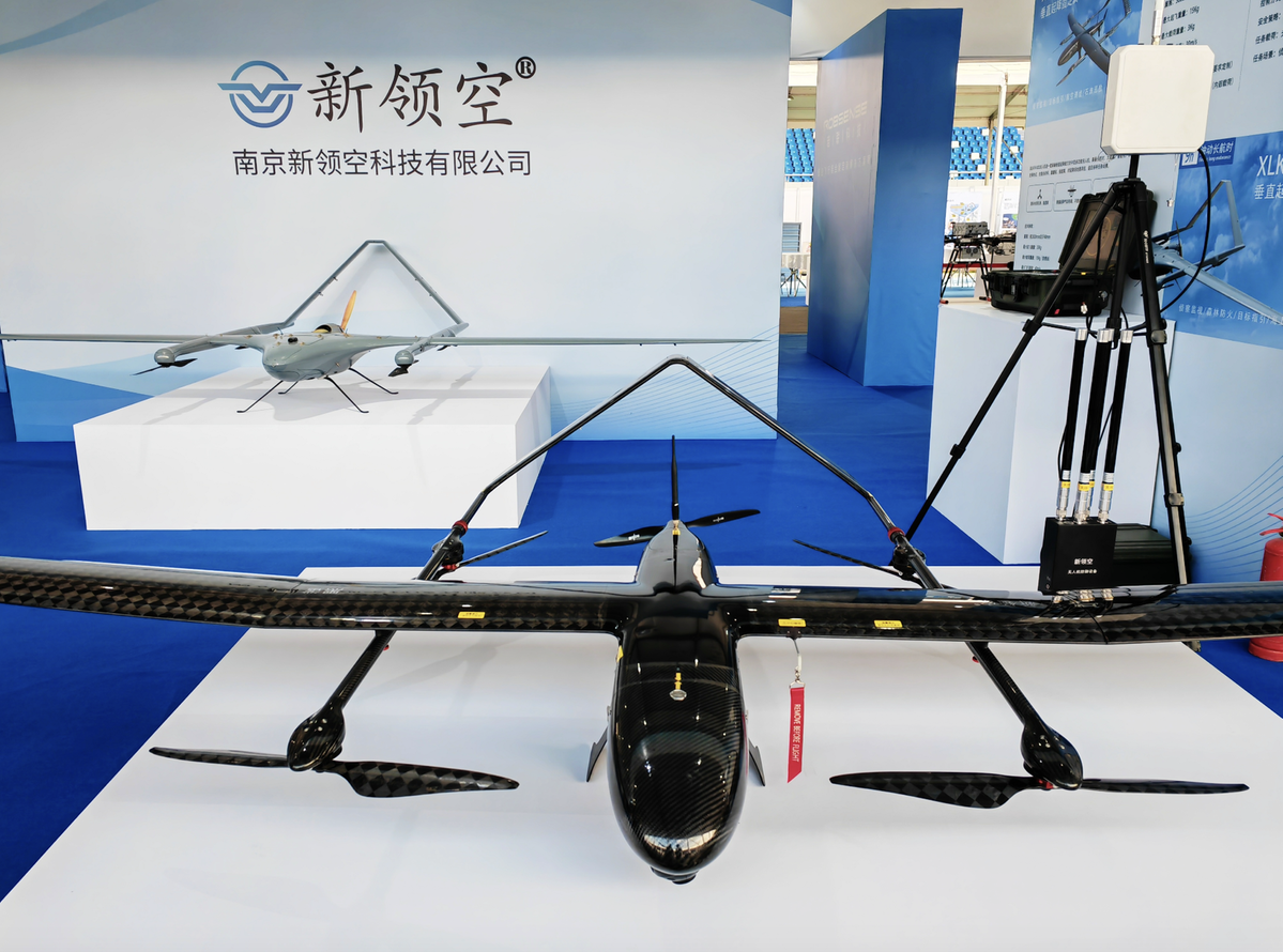 南京新領(lǐng)空科技有限公司展示的垂直起降固定翼飛機(jī)。新華社記者王聿昊 攝