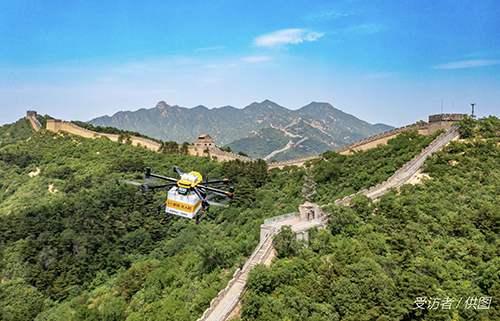 近期,美團在北京延慶八達嶺長城開通了首條無人機配送航線。無人機可幫助降落點附近游客購買并運送急需的防曬傘、降溫貼等防暑降溫物資。每天營運時間結束后,無人機會協助景區運維人員將附近廢棄物運送至指定回收位置,緩解酷暑下工作人員的日常運輸壓力。