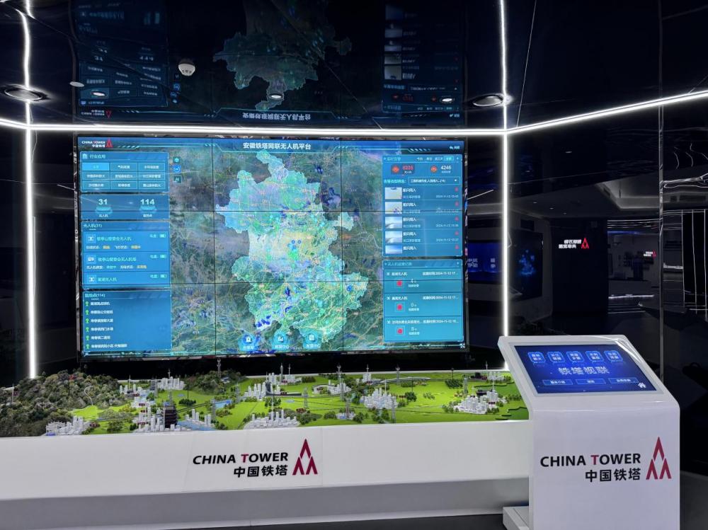 在中國鐵塔安徽省分公司(以下簡稱“安徽鐵塔”)監控指揮中心,工作人員輕點鼠標,一架被選定的無人機從通信塔上騰空而起,開始了自動巡飛任務。
