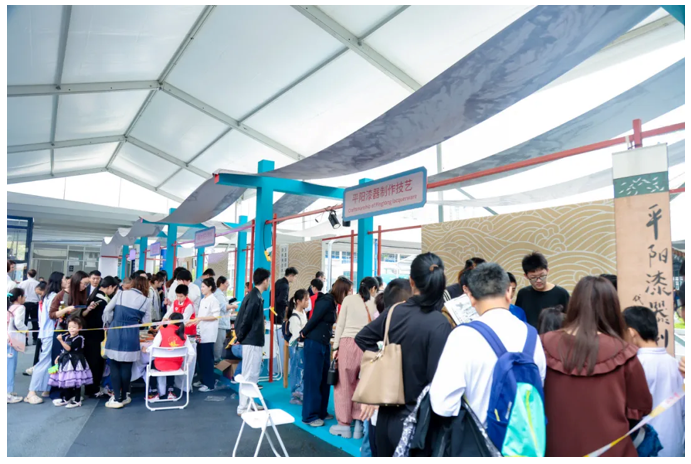 而在萬有引力π非遺展示區,也有著李子柒同款非遺——瑞安木活字印刷術,以及樂清細紋刻紙、甌繡、平陽漆器等。