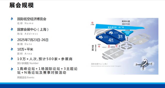 2025首屆國(guó)際低空經(jīng)濟(jì)博覽會(huì)(簡(jiǎn)稱:國(guó)際低空展),是經(jīng)上海市政府批準(zhǔn),圍繞低空經(jīng)濟(jì)這一戰(zhàn)略性新興產(chǎn)業(yè)的國(guó)際化博覽會(huì)。以“啟航低空經(jīng)濟(jì),賦能千行百業(yè)”為主題,重點(diǎn)展示低空基礎(chǔ)設(shè)施、制造與配套服務(wù)等產(chǎn)業(yè)鏈,低空交通運(yùn)輸、城鄉(xiāng)管理、商業(yè)融合應(yīng)用、個(gè)人消費(fèi)等應(yīng)用鏈。國(guó)際低空展關(guān)注低空企業(yè)發(fā)展需求和應(yīng)用場(chǎng)景落地,通過主題展覽、行業(yè)論壇、對(duì)接活動(dòng)和演示體驗(yàn)等內(nèi)容和形式,為低空經(jīng)濟(jì)管理、研究、生產(chǎn)、服務(wù)與應(yīng)用等展商和觀眾,打造交流交易臺(tái).通過本屆博覽會(huì),與會(huì)者可以更好地了解國(guó)內(nèi)外低空政策和市場(chǎng)發(fā)展趨勢(shì),集聚發(fā)展要素,鏈接精準(zhǔn)客群,拓展國(guó)內(nèi)外市場(chǎng),提升品牌影響力。同時(shí),我們期望通過本次博覽會(huì),使低空經(jīng)濟(jì)更好地滿足人民群眾對(duì)美好生活需要,展現(xiàn)低空領(lǐng)域豐富的創(chuàng)新創(chuàng)業(yè)機(jī)會(huì),助力各地加快發(fā)展低空經(jīng)濟(jì)新質(zhì)生產(chǎn)力,扎實(shí)推進(jìn)高質(zhì)量發(fā)展。