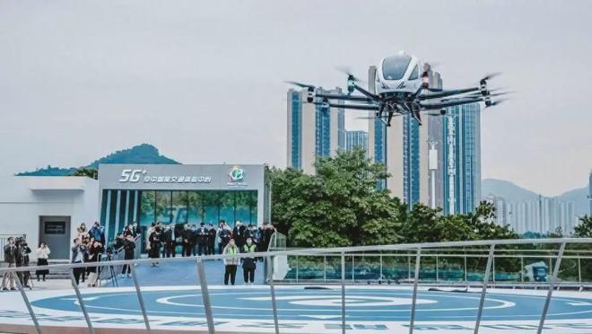 2023年,億航智能自主研發(fā)的EH216-S無(wú)人駕駛載人航空器在廣州起飛。